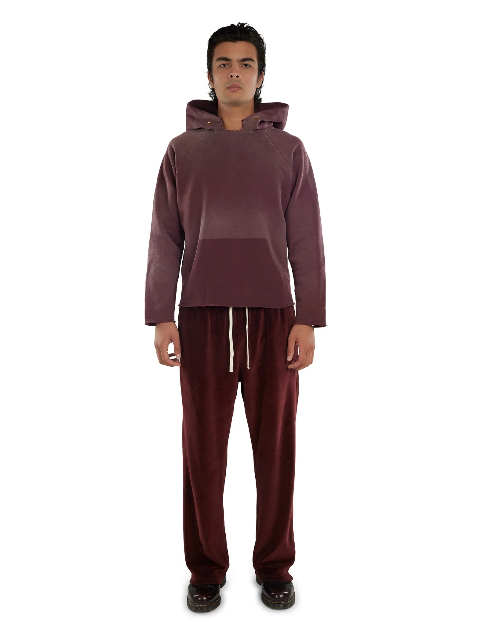 初登場となるRAW RAGLAN HOODIE。現行モデルにさらにカスタムを加え、襟元と袖、裾の全てを切りっぱなしにしています。さらに、フロントのカンガルーポケットはあえて染色後に外すことでその部分だけ色を残しダミーポケットのように仕上げたスペシャルモデルです。